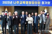 브릿지저널 김경미 기자 | 전라남도 나주시와 나주교육지원청(교육장 변정빈)은 지난 26일 나주교육지원청 대회의실에서 ‘2025년 나주교육행정협의회 정기회’를 개최했다고 밝혔다. 교육행정협의회는 시와 교육청 간 교육행정 현안을 논의하고 지역 발전 방안을 모색하는 협의기구로 매년 한 차례씩 정기회를 개최하고 있다. 이번 정기회는 공동의장인 윤병태 나주시장과 변정빈 나주교육지원청 교육장을 비롯한 13명의 위원이 참석하여 나주교육의 정책 방향을 공유하고 주요 교육 현안의 협력 방안을 논의했다. 회의에서는 시와 교육지원청이 제안한 3건의 안건을 깊이 있게 논의했으며 시는 공공기관-대학 연계 지역특화 공동교육과정 확대, 매성초 신설 및 학교 복합시설 건립 신속 추진 등 2건을, 교육지원청은 나주 청소년 정보보안 해커톤 대회 운영을 안건으로 제출했다. 특히 시에서는 교육발전특구 선도지역 사업으로 운영하고 있는 자율형 공립고 2.0 공공기관-대학 연계 지역특화 공동교육과정의 참여 학생 및 연계 기관을 확대하기 위한 다양한 방안을 중점적으로 제안하였으며 이를 통해 교육격차 해소와 지역 교육자원 공유체계 강화를 모색