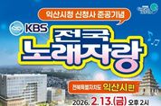 브릿지저널 윤나영 기자 | KBS 전국노래자랑 무대가 익산을 찾아온다. 익산시는 오는 2월 13일 익산시실내체육관에서 전국노래자랑 '익산시 편'이 공개 녹화로 진행된다고 19일 밝혔다. 방송은 3월 말께 전국에 방영될 예정이다. 이번 무대는 시민의 염원이었던 익산시 신청사 개청을 다함께 축하하고, 힘찬 출발을 알리기 위해 마련됐다. 초대 가수로 박상철과 서주경, 양지은, 정서주, 김용빈이 출연해 축하 무대를 꾸민다. 본선 무대에는 예선을 통과한 15~17팀의 시민 참가자가 무대에 오르게된다. 참가 신청은 오는 23일부터 2월 5일까지 읍·면·동 행정복지센터 또는 시 행정지원과에서 선착순 300명까지 가능하다. 예심은 2월 11일, 솜리문화예술회관에서 열린다. 시 관계자는 "신청사 준공은 익산의 미래를 여는 상징적인 순간"이라며 "전국노래자랑을 통해 시민과 함께 신청사 개청을 축하하고, 익산의 밝은 에너지를 전국에 전하겠다"고 말했다.