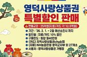 브릿지저널 정보영 기자 | 영덕군은 설 명절을 앞두고 지역 상권 활성화와 소비 촉진을 위해 2월 1일부터 ‘영덕사랑상품권’을 10% 특별 할인 판매한다. 영덕군은 지난 1월 할인 판매의 높은 관심과 설 명절 수요를 반영해 2월 판매 규모를 기존의 두 배인 25억 원(지류·카드 각 12.5억 원)으로 확대했다. 다만, 보다 많은 이용자가 구매할 수 있도록 1인당 구매 한도를 월 40만 원으로 제한키로 했다. 상품권은 NH농협은행 영덕군지부를 포함한 관내 금융기관 28개 판매대행점에서 구매할 수 있으며, 카드형 상품권은 지역사랑상품권 chak앱을 통해 충전하거나 판매대행점에서 오프라인으로 충전할 수 있다. 황정기 일자리경제과장은 “설 연휴 기간 지역 소비를 촉진하고 더 많은 군민이 혜택을 누릴 수 있도록 25억 원 한도 내에서 할인 행사가 이뤄지는 만큼 예산이 소진되기 전 혜택을 누리시길 바란다”라고 전했다.