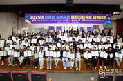 브릿지저널 윤나영 기자 | '2025 춘천시 영어캠프-미래인재육성 아카데미'가 성공적으로 마무리되면서 춘천의 인재 육성을 위한 새로운 교육 혁신의 닻이 올랐다. 춘천시민장학재단은 지난 16일 춘천교대 홍익관 일지홀에서 아카데미 수료식을 개최했다. 지난달 25일부터 매주 주말 동안 열린 이번 캠프는 춘천지역 초·중학생 100명이 참여했으며 전 과정이 원어민 강사와 함께하는 몰입형 학습으로 이뤄졌다. 이번 영어캠프는 기존의 주입식 교육 방식을 탈피하고 학생 스스로 배우고 참여하는 ‘춘천형 영어 모델’을 만드는 데 중점을 뒀다. 참가 학생들은 원어민 강사와 함께 총 13단계의 미션형 프로젝트를 수행하며 단순히 문법이나 회화 지식을 습득하는 것을 넘어 영어를 활용해 문제를 해결하는 실질적인 능력을 배양했다. 한 중학생 참가자는 “수업에서 배운 표현을 바로 프로젝트에 써보니까 영어가 더 이상 교과서 속 문장이 아니라 내가 직접 쓰는 언어처럼 느껴졌다”고 말했다. 이러한 프로젝트 기반 학습(PBL) 방식은 학생들의 수업 능동 참여와 영어에 대한 몰입도를 극대화했다는 평가다. &nbs