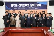 브릿지저널 윤나영 기자 | 완주군과 전북 싱크탱크인 전북연구원이 18일 오후 완주군청에서 유 군수와 장 원장대행을 포함한 주요 관계자 20여 명이 참석한 가운데 ‘완주군-전북연구원 정책간담회’를 열었다. 이번 간담회는 완주군의 주요 현안사업을 전북연구원과 함께 논의하며 최적의 대응 방안을 모색하기 위해 마련됐다. 이날 주요 안건은 ▲피지컬AI 산업 육성 및 활성화 전략 ▲피지컬 AI 및 2차 공공기관 이전 부지 입지 검토 ▲경관조성을 통한 관광·축제 활성화 방안 ▲완주군 외국인 정책 운영 방향 등으로 양 기관은 안건별 주요 쟁점, 대응 방향 및 계획 등에 대해 심도 있는 토론을 진행했다. 유희태 군수는 “이번 간담회는 군과 연구원의 상시 협력체계를 더욱 공고히 할 수 있는 기회”라며, “피지컬 AI와 관광·축제 활성화 등 군정 주요 현안 대응과 신성장 동력 발굴 등을 위해 앞으로도 전북연구원과 긴밀히 소통하며 협력해 나가겠다”고 말했다. 장성화 대행은 “완주군은 전북 신산업 발전을 선도하는 전진기지”라고 말하며, “완주군이 전북 경제의 중심도시로 도약할 수 있도록 적극적으로 지원하고 기관 간 협업을