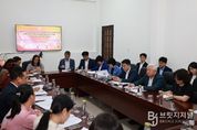 브릿지저널 윤나영 기자 | 전북특별자치도 고창군과 더불어민주당 지역위원회가 2025년 두번째 정책협의회를 열고 지역 현안 해결과 국가예산 확보를 위해 힘을 모으기로 했다. 19일 오후 2시 고창군청 2층 회의실에서 열린 이번 협의회에는 심덕섭 고창군수와 윤준병 국회의원, 조민규 고창군의회 의장, 전북특별자치도 도의회 김만기·김성수 의원과 군의원 등 주요 인사들이 참석했다. 회의에서는 고창군이 이뤄낸 주요 성과들을 함께 돌아보며 축하와 격려의 시간을 가졌다. 주요성과로는 삼성전자 고창물류센터와 고창종합테마파크 조성사업을 비롯해 14개 기업에서 총 1조5600억원 규모의 민간투자 유치, 제22회 청보리밭축제와 제62회 전북특별자치도민체육대회의 성공적 개최, 고창 명품수박 프리미엄 전략의 성공으로 돈버는 농업농촌 실현, 민원서비스 종합평가 우수기관 선정, 그리고 청년특화주택 건립사업 등 굵직한 공모사업 선정 등이 있다. 정책협의회에서는 군정 주요사업 41건(현안 18, 국가예산 23)에 대한 심도 있는 논의가 이뤄졌다. 특히 2026년도 국가예산 국회 심의 과정에서 고창군의 핵심 사업들이 최