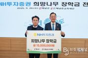 브릿지저널 김경미 기자 | NH투자증권에서 인재육성을 위한‘희망나무 장학금’1,500만원을 해남군에 전달했다. 해남군청에서 진행된 전달식에는 명현관 군수, NH투자증권 임철순 ESG본부장, 농협중앙회 하정필 해남군지부장과 지역 농협장들이 함께했다. 해남군은 전달받은 장학금을 해남군교육재단을 통해 지역 내 다문화가정, 조손가정, 한부모가정 등 저소득 우수 고등학생 10명을 선발, 1인당 150만원씩 지급할 계획이다. 지난 2005년부터 전국 우수 고교생에 장학금을 지원해온 NH투자증권은 올해부터는 농촌지역 지자체에 직접 장학금을 지원하는 방식으로 제도를 개편했다. NH투자증권 임철순 ESG본부장은“희망나무 장학금은 농촌지역 학생들이 희망과 용기를 갖고 학업에 매진하여 꿈을 이룰 수 있도록 돕기 위한 것”이라며“해남군과의 협력을 통해 선발될 학생들이 꿈을 향해 나아갈 수 있도록 앞으로도 응원하겠다”고 밝혔다. 명현관 군수는“NH투자증권의 지역 인재 양성을 위한 관심과 지원에 진심으로 감사드린다”며“이번에 전달받은 장학금을 통해 어려운 환경 속에서도 학업에 정진하는 우리 해남군 학생들에게 큰