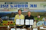 브릿지저널 정보영 기자 | 봉화군은 봉화군과 봉화군공무직근로자 노사 양측 각각 4명의 위원이 참석한 가운데 지난 24일 군청 소회의실에서 2025년도 노사협의회를 가졌다고 밝혔다. 이날 회의에서는 지난 8월 공무직 근로자 측이 제시한 ‘8세 이하 자녀를 둔 공무직 근로자에게 연간 5일의 보육휴가 부여 안건’에 대해 심도 있게 논의해 합의를 도출했다. 박현국 봉화군수는 “이번 협의 결과가 일과 삶의 균형을 이루는 근무 환경을 조성하는 밑거름이 되기를 바란다.”며 “앞으로도 노사 간의 소통과 협력을 통해 상생의 노사 문화가 뿌리내리도록 최선을 다하겠다.”라고 말했다. 전종국 위원장도 “이번 협의를 통해 조합원들의 권리와 의무가 조화를 이루는 건강한 조직문화를 정착시키고, 노사가 함께 성장하는 발전적 관계를 이어가며 조합원과 군민 모두가 행복한 봉화를 만들기 위해 노력하겠다.”라고 화답했다.