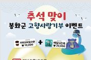 브릿지저널 정보영 기자 | 봉화군은 민족 최대의 명절인 추석을 맞아 고향사랑기부제에 대한 홍보와 기부문화 확산을 위해 오는 9월 29일부터 10월 19일까지 경품 이벤트를 실시한다. 이벤트 기간 중 봉화군에 건당 10만 원 이상 기부하고 답례품까지 선택을 완료한 선착순 100명에게는, 배달의민족 2만 원권 기프티콘 또는 1만 원 상당의 커피 상품권을 랜덤으로 증정할 예정이다. 경품 추첨 결과는 10월 24일 개별 통보된다. 또한 이벤트 기간 중 오는 10월 16일부터 19일까지 열리는 ‘봉화송이축제’ 행사장 내 고향사랑 홍보 부스를 방문해 현장 기부에 참여하면 봉화사랑상품권 2만원을 추가로 지급한다. 다만, 동일인이 이벤트에 중복 참여할 경우 혜택은 제한된다. 금대원 재정과장은 “고향을 생각하는 따듯한 마음이 모여 봉화의 미래를 밝히는 큰 힘이 될 것이다.”면서 “이번 추석에는 가족과 함께 나눔과 기부의 의미를 되새기며 고향사랑 기부에 동참해 주시기를 바란다.”라고 말했다. 한편, 고향사랑기부금은 ‘고향사랑e음’ 누리집이나 전국 농‧축협 영업점을 방문해 기부할 수 있다.