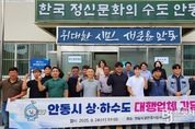 브릿지저널 정보영 기자 | 안동시는 9월 24일 맑은물사업국 2층 국장실에서 상․하수도 대행업체 10개 사 대표들과 맑은물사업국 직원 등 20여 명이 참석한 가운데, 사업 품질향상 및 상호협력 강화를 위한 ‘상․하수도대행업체 간담회’를 개최했다. 안동시는 상․하수도 대행업체를 지정해 전문 장비와 전문인력을 상시 유지하고 있으며 상․하수도관 파열, 호우 등 비상 상황 발생 시 신속한 현장 조치로 시민에게 안정적인 급수 및 배수 서비스를 제공하고 있다. 이번 간담회는 다가올 추석 연휴를 대비하여 상․하수도 대행업체의 안전하고 효율적인 대행 업무 수행을 위해 마련됐다. 공사 현장 내 작업자 안전교육 및 안전 조치사항, 급수전 폐전 및 수도계량기 교체 시 유의 사항, 배수 설비 시공기준 및 방법 등을 중점적으로 교육했다. 또한, 대행업체들이 겪고 있는 현장의 문제와 애로사항을 청취해 해소 방안을 마련하고, 상호협력 강화 방안을 모색했다. 안동시 관계자는 “최근 이상기후로 인한 집중호우, 가뭄 등이 빈번히 발생해 상․하수도 시설 관리에 대한 중요성이 대두되고 있다”며, “이번 간담회를 통해 대행업체와 업무