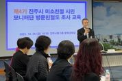 브릿지저널 김경미 기자 | 진주시는 24일 시청 3층 문화강좌실에서 ‘2025년 미소친절 시민모니터단 교육’을 실시해 친절행정 실현에 앞장서고 있다. 이번 교육에는 미소친절 시민모니터단 25명이 참석해 모니터단의 역할과 평가체계를 이해하고, 읍면동 민원현장의 친절서비스 개선을 위한 암행 모니터링 방법 등 실무중심의 교육이 진행됐다. 또한 시민이 만족하는 친절행정 실현을 위한 의견 교환도 활발히 이뤄졌다. 미소친절 시민모니터단의 조사 결과는 올해 상·하반기 2회에 걸쳐 실시한 전화 친절도 평가 점수와 합산해 연말 읍면동 종합평가에 반영될 예정이다. 한편 진주시 미소친절 시민모니터단은 전 읍면동을 대상으로 ▲공무원의 친절도 ▲업무해결 노력도 ▲신속성 및 정확성 등을 시민의 눈높이에서 평가하고, 민원서비스 제도개선 의견을 제시하는 등 공무원 친절역량 강화를 위한 다양한 활동을 펼치고 있다. 장정오 민원여권과장은 “미소친절 시민모니터단은 시민의 눈높이에서 행정서비스를 살피는 소중한 파트너이다”면서 “앞으로도 시민이 체감할 수 있는 친절행정 구현을 위해 모니터단과의 소통을 강화하겠다”고 말했다