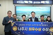 브릿지저널 김경미 기자 | 나주시가 농업 경쟁력 강화와 매력 있는 농촌 구현에 힘써온 결실로 2025년 전라남도 농촌진흥사업 종합평가에서 최우수상을 받았다. 지난해 7월 농축산식품국과 농업기술센터의 분리 조직개편으로 농업행정과 산하에 재편된 농촌진흥팀은 이번 수상을 통해 1년 반 만에 전문적인 업무 역량을 대외적으로 인정받았다. 26일 나주시에 따르면 이번 평가는 올 한 해 도내 각 시군 농업기술센터에서 추진한 농촌진흥사업 성과를 시상하는 제도다. 평가 항목은 농촌진흥청 지표인 ‘기술보급 기반 확대 노력도’, ‘현장 애로 해소 및 신기술 확산 실적, ’농촌자원 활성화‘, ’농업재해 대응 및 병해충 예방실적‘, ’전문역량 개발 및 청년농업인 육성‘ 등 주요 평가 항목에도 자체 지표를 더해 총 13개 항목으로 구성됐다. 나주시는 특히 농업재해 대응과 병해충 예방 실적, 전문 역량 개발 및 청년 농업인 육성 분야에서 뛰어난 성과를 거두며 전 지표에 걸쳐 고른 실적을 달성했다. 전체 면적의 약 43%가 농림 지대인 나주시는 전국 최대 배 재배 지역이자 도내 벼 재배 규모 3위, 미나리와 고추는 1위를 기록