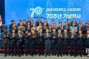 브릿지저널 김경미 기자 | 경상국립대학교 수의과대학은 설립 70주년을 맞이하여 70년 개척의 역사를 바탕으로 미래 100년을 향한 새로운 비상을 기념하기 위해, 10월 23일 오후 5시 칠암캠퍼스 100주년 기념관에서 ‘70년 개척의 자부심, 100년을 향한 새로운 비상’이라는 슬로건으로 ‘경상국립대학교 수의과대학 70주년 기념행사’를 개최했다. 기념행사에는 경상국립대학교 권진회 총장, 권순기 전 총장, 김상현 수의과대학장과 명예교수, 교직원, 학생, 최재영 수의과대학 총동문회장과 동문회 임원, 대한수의사회 허주형 회장, 이영락 부산수의사회 회장, 엄상권 경남수의사회 회장 등 300여 명이 참석했다. 기념행사는 개식, 국민의례, 내빈 소개, 대학 발전사 영상 시청, 환영사, 학사보고, 기념사, 축사, 공로패 수여, 감사패 수여, 발전기금 전달식, 학생 축하공연, 교가 제창, 기념 촬영 등의 순으로 진행됐다. 이날 행사에서 수의과대학 발전에 기여한 수의과대학 김종섭 명예교수, 최상용 명예교수, ㈜코미팜 문성철 대표, 대한수의사회 허주형 회장, 부산수의사회 이영락 회장에게 공로패를 수여했다. 또한 서울