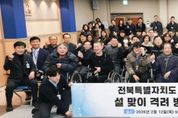 브릿지저널 윤나영 기자 | 전북특별자치도가 공무 수행 중 적립된 공적 항공마일리지를 활용해 도내 복지시설에 생활필수품을 기부하는 ‘공적 마일리지 나눔’을 꾸준히 이어가고 있다. 도는 12일 설 명절을 앞두고 전북장애인복지관을 방문해 공적 항공마일리지를 활용해 마련한 생활필수품을 전달하고, 복지관 종사자와 이용 장애인들을 격려했다. 이날 나눔식에는 김관영 도지사를 비롯해 복지관 관계자와 이용자들이 함께해 따뜻한 분위기 속에서 전달식이 진행됐다. 이번 기부는 공무 수행 과정에서 적립된 항공마일리지 중 유효기간 만료로 소멸될 예정인 마일리지를 공익 목적으로 활용한 사례다. 2025년 말 소멸 예정 마일리지 보유자와 자발적으로 참여한 공무원 등 40여 명이 동참해 총 486,250마일리지가 사용됐다. 기부 물품은 항공사 마일리지몰을 통해 직접 구매했으며, 화장지, 라면, 치약·칫솔, 샴푸류, 물티슈 등 생활필수품 15종 121세트로 구성됐다. 복지시설 이용자들의 일상에 실질적인 도움이 되는 품목 위주로 마련됐다. 공적 항공마일리지 기부는 '공무원 보수 등의 업무지침'에 따른 공무원여비업무 처리