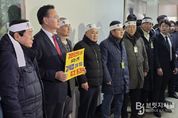 브릿지저널 윤나영 기자 | 9일부터 국회 천막농성을 이어가고 있는 김진태 강원특별자치도지사가 2월 10일 국회 행정안전위원회 제1법안심사소위원회 회의실 앞에서 ‘투쟁’이라고 적힌 머리띠를 두르고 강원특별자치도법 3차 개정안의 조속한 심사를 강력 촉구했다. - 이날 국회 행안위 법안심사소위에서는 행정통합특별법이 상정돼 심사가 진행 중이며, 해당 법안은 11일까지 논의가 이어질 예정이다. 이 자리에는 유상범 국회의원(홍천・횡성・영월・평창)도 ‘강원도민의 삶을 바꾸는 선택. 강특법 3차 개정 즉각 통과’라고 적힌 피켓을 들고 행정안전위원회 의원들에게 강원특별법 3차 개정안의 조속한 처리를 요청했다. 김 지사는 “행정통합 시도인 5극은 빠른 속도로 국회 심사대에 오른 반면, 정부 부처 협의까지 마친 강원특별법 3차 개정안은 17개월 째 단 한 차례도 법안심사 논의가 이뤄지지 않았다”며 강한 유감을 표했다. 이어 “강원・전북・제주・세종, 이른바 3특과 행정수도 특별법안 역시 균형발전 차원에서 신속히 처리돼야 한다”고 강조했다.