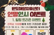 브릿지저널 김경미 기자 | 완도군은 연말연시를 맞아 군민과 관광객이 완도해양치유센터에서 힐링할 수 있도록 다양한 이벤트를 추진한다. 먼저 방문객들이 사진으로 ‘완도’와 ‘해양치유’를 추억할 수 있도록 센터에 힐링 트리존을 조성했다. 힐링 트리존에서 사진을 찍은 후 개인 SNS에 해시태그(#완도해양치유센터)와 함께 사진을 업로드하면 선착순 100명에게 기프티콘을 증정하는 이벤트를 진행한다. 해양치유센터 1, 2층에 숨겨진 산타 스티커를 찾아 안내 데스크에 제출하면 선물을 주는 ‘산타를 잡아라!’ 이벤트도 준비했다. 두 가지 이벤트는 12월 3일부터 시작된다. 12월 24일부터 27일까지는 해양치유 프로그램과 연계한 감성 있는 연말 분위기를 즐길 수 있도록 ‘크리스마스 원데이 클래스’도 운영한다. 원데이 클래스는 ▲‘완도호랑가시’를 활용한 트리 만들기(24일) ▲다시마 반죽으로 과일 모찌 만들기(25일) ▲비파 비누·캔들 만들기(26일), ▲유자 케이크 만들기(27일) 등 완도 특산물을 활용한 체험과 해양치유(기본2) 프로그램을 연계했다. 참가 방법은 12월 1일부터 22일까지
