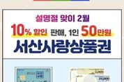브릿지저널 정보영 기자 | 충남 서산시는 2026년 2월 설 명절을 맞아 지역 경제 활성화를 위해 서산사랑상품권을 150억 원 규모로 확대 발행한다고 밝혔다. 시는 2월 한시적으로 서산사랑상품권 1인당 구매 한도액을 기존 40만 원에서 50만 원으로 상향하고, 할인율은 기존과 동일한 10%를 적용한다. 모바일(카드) 상품권은 오는 2월 1일 오전 6시부터 ‘지역사랑상품권 chak’ 앱을 통해 구매할 수 있다. 지류 상품권은 2월 2일 농축협, 신협, 수협, 새마을금고, 우체국, 하나은행 등 판매대행점 58개소 개점 시간부터 구매할 수 있다. 구입한 상품권은 관내 가맹점 7,575개소에서 사용할 수 있으며, 자세한 사항은 서산시 누리집에서 확인할 수 있다. 이완섭 서산시장은 “이번 서산사랑상품권의 확대 발행이 설 명절을 맞은 시민의 가계 부담을 덜고, 지역 내 소비 촉진을 통해 소상공인 매출 증대와 골목상권 활성화로 이어지길 바란다”라고 말했다.