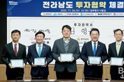 브릿지저널 김경미 기자 | 전라남도는 26일 동부청사에서 여수그린에너지㈜, ㈜한화 글로벌부문, ㈜LX MMA 등과 1조 2천441억 원, 고용 창출 147명 규모의 투자협약을 했다. 협약식에는 김영록 전남도지사와 한상훈 여수그린에너지㈜ 대표이사, 김태욱 ㈜한화 글로벌부문 머티어리얼(Material)사업부장, 김창호 ㈜엘엑스 엠엠에이(LX MMA) 공장장, 정기명 여수시장 등이 참석했다. 전남도는 이번 투자가 여수국가산단의 범용 석유화학 소재 중심 산업구조를 친환경·바이오·고부가가치 산업으로 전환하는 첫걸음이 될 것으로 기대하고 있다. 또한 대규모 설비 투자에 따라 건설·물류·서비스업 등으로 고용이 확대돼 지역 고용 안정에도 도움이 될 전망이다. 투자협약에 따라 여수그린에너지는 1조 원을 투자해 여수산단 입주 기업에 전력·스팀을 안정적으로 공급하기 위한 LNG 복합화력발전소를 건설한다. 스팀과 전력을 동시에 생산해 에너지 이용 효율을 높이고, 석탄화력발전 대체를 통한 친환경에너지 정책에도 기여하겠다는 계획이다. 한화 글로벌부문은 바이오의약품 제조 공정에 필수적으로 사용되는 완충용액의 핵심 원료인 고순
