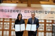 브릿지저널 김경미 기자 | (재)김포문화재단과 김포시가족센터는 10월 24일 김포아트빌리지 한옥마을 전통문화체험관에서 관내 가족문화 확산을 위한 업무협약을 체결했다. 이번 협약은 ▲가족친화적인 문화예술 프로그램 개발 및 공동 운영, ▲지역 내 가족문화 자원의 교류, ▲양 기관의 전문성을 바탕으로 한 프로그램 협력 및 지원 체계를 구축하는 내용 등을 담고 있다. 김포문화재단은 그동안 시민과 함께하는 문화예술교육 및 생활문화사업을 꾸준히 추진해오며 시민중심의 문화 확산에 힘써왔고, 김포시가족센터는 가족돌봄, 가족관계 증진 등 다양한 가족복지사업을 통해 지역사회 내 가족 친화적 환경 조성에 기여해왔다. 양 기관은 이번 협약을 계기로 ▲세대 간 소통을 위한 문화예술교육, ▲가족참여형 축제・전시, ▲지역사회 네트워크 활성화 등 관련 사업을 함께 기획・운영하며 지역의 가족문화 기반을 확대에 나갈 예정이다. 김포문화재단 이계현 대표이사는 “이번 협약을 통해 김포시민이 가족과 함께 누릴 수 있는 문화적 혜택을 더욱 넓히고 삶의 질 향상에 기여할 수 있기를 기대한다.”고 전했다. 김포시 가족센터 조미정
