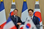 브릿지저널 김경미 기자 | 이재명 대통령이 3일 한·프랑스 정상회담을 마치고 "원자력·해상 풍력 분야의 협력을 확대해 에너지 안보를 강화하는 한편, 호르무즈 해협 내 안전한 해상수송로 확보를 위해 협력하겠다는 의지도 확인했다"고 밝혔다. 이 대통령은 이날 국빈 방한 중인 에마뉘엘 마크롱 프랑스 대통령과 정상회담 이후 열린 공동언론발표에서 "중동전쟁이 야기한 경제 및 에너지 위기에 공동 대응하고자 정책 경험과 전략을 공유하고, 글로벌 경제의 불확실성 해소를 위해 함께 노력하기로 했다"며 이같이 말했다. 이날 한국과 프랑스는 양국 관계를 '글로벌 전략적 동반자'로 격상하기로 했다. 2004년 '21세기 포괄적 동반자' 관계를 맺은 지 22년 만이다. 또한 양국 관계를 미래지향적 방향으로 발전시키겠다는 확고한 의지가 담긴 공동성명을 채택했으며, 이어 3건의 협정과 11건의 양해각서도 체결했다. 이번 회담의 구체적인 성과에 대한 설명도 이어졌다. 이 대통령은 "지난해 양국 교역액은 150억 달러로 역대 최대치였으나 여기서 만족할 수는 없다"며 "2030년 200억 달러 교역액 달성을 목표로