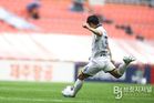 브릿지저널 정보영 기자 | 이제 시선은 K리그 100번째 홈경기로 향한다. 김천상무프로축구단(대표이사 이재하)이 4월 18일 토요일 16시 30분, 제주월드컵경기장에서 열린 ‘하나은행 K리그1 2026’ 8R 원정경기에서 제주SK FC(이하 제주)와 1대 1로 무승부를 거뒀다. 어려운 원정길에서 승점 1점을 챙긴 김천상무는 이제 K리그 100번째 홈경기가 열리는 4월 21일 9R 강원전을 준비한다. 김천상무는 4-4-2 포메이션을 가동했다. 백종범이 골키퍼 골문을 지켰다. 백포는 박철우, 이정택, 김현우, 김태환이 구축했다. 중원에는 박태준과 이수빈이 자리했고, 좌우 날개에 홍윤상과 고재현이 위치했다. 최전방은 이건희와 이상헌이 책임졌다. 백종범 슈퍼세이브 ▶ 박태준 선제골! 김천상무는 지난 경기와 동일한 선발 라인업으로 경기에 임했지만, 교체명단에는 변준수, 노경호가 처음 이름을 올렸고, 부상에서 복귀한 김추잔을 포함하며 변화를 주었다. 경기 초반 흐름은 김천상무가 주도했다. 전방에서부터 강력한 압박을 통해 제주를 거세게 몰아부쳤다. 제주도 이를 공략하기 위해 빠른 빌드업을 시도하며 대응했다. 전