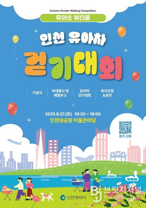 브릿지저널 김경미 기자 | 인천광역시는 오는 9월 27일 인천대공원 어울큰마당에서 ‘2025년 인천 유아차 걷기대회’ 를 개최한다고 밝혔다