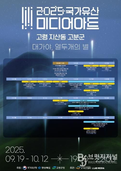 브릿지저널 정보영 기자 | 대가야, 열두개의 별을 미디어아트로 노래한 '2025 국가유산 미디어아트 고령 지산동 고분군'이 9월 19일 금요일 밤 성황리에 개막했다.