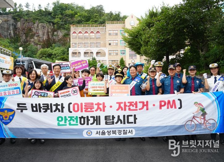 브릿지저널 김경미 기자 | 서울시 성북구의 안전한 통학로 조성을 위한 끊임없는 노력이 계속되고 있다. 성북구는 성북강북교육지원청, 성북경찰서와 힘을 합쳐 2025년 9월 19일 금요일, 개운초등학교에서 어린이 통학로 교통안전 캠페인을 개최했다.