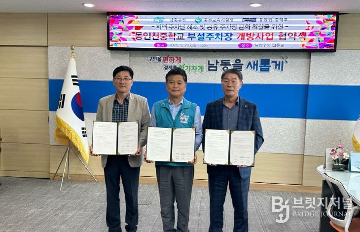 브릿지저널 김경미 기자 | 인천동부교육지원청은 23일 남동구청, 동인천중학교와 학교부설주차장 개방 협약을 체결했다고 밝혔다.