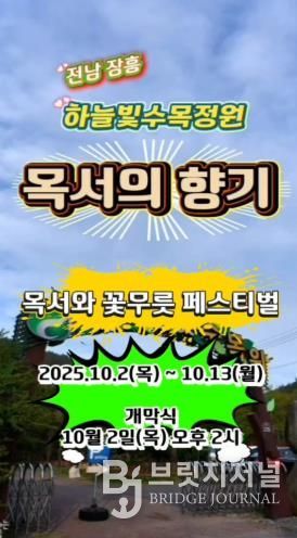 브릿지저널 김경미 기자 | 장흥군 용산면에 위치한 하늘빛수목정원에서 오는 10월 2일부터 13일까지 11일간 ‘제3회 하늘빛수목정원 금·은목서 향기 페스티벌’을 개최한다.