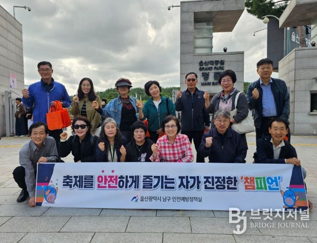 브릿지저널 윤나영 기자 | 울산 남구는 17일 울산대공원 일원에서 안전보안관 20여 명이 구민들을 대상으로 축제장 안전사고 예방 홍보 안전캠페인을 실시했다고 밝혔다.