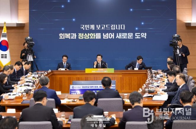 브릿지저널 김경미 기자 | 이재명 대통령은 19일, 정부 서울청사 별관에서 외교부, 통일부, 금융위원회, 공정거래위원회, 법무부, 성평등가족부와, 그 소속 기관의 업무보고를 받았다.