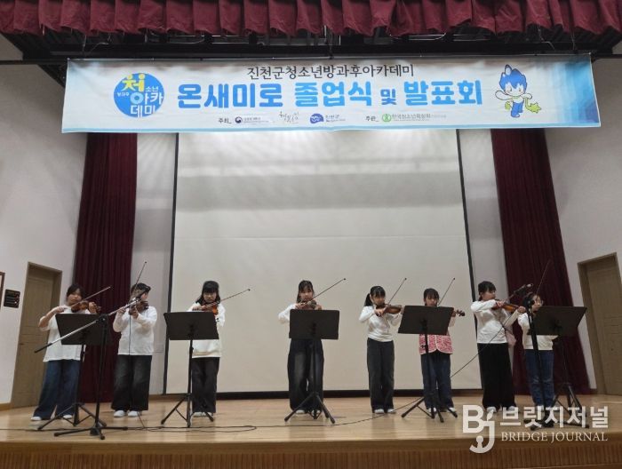 브릿지저널 김경미 기자 | (사)한국청소년육성회 진천지구회(회장 송대현)가 운영하는 진천군청소년방과후아카데미 ‘온새미로’는 지난 19일 진천군청소년수련관에서 제18회 졸업식과 발표회를 개최했다.