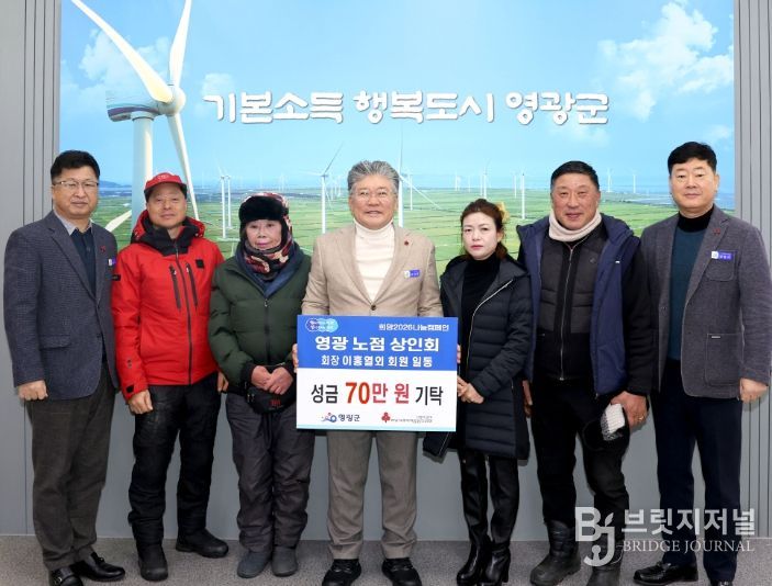 브릿지저널 김경미 기자 | 영광군은 영광노점상인회에서 12월 26일 어려운 이웃들을 위해 성금 70만 원을 기탁했다고 밝혔다.