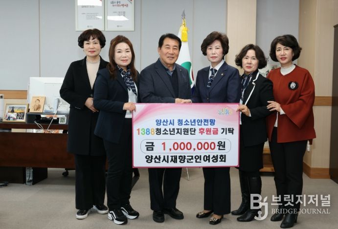 브릿지저널 김경미 기자 | 양산시 재향군인여성회(회장 전정애)는 30일 양산시를 방문해 후원금 100만 원을 양산시청소년상담복지센터 1388청소년지원단에 기탁했다.