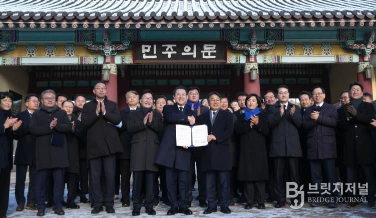 브릿지저널 김경미 기자 | 전라남도와 광주시가 병오년 새해를 맞아 2일 국립5·18민주묘지에서 대한민국 민주화의 상징인 오월 영령들 앞에서 광주·전남 대부흥의 새 역사를 열어가기 위해 양 시·도 대통합을 즉각 추진하기로 선언했다.