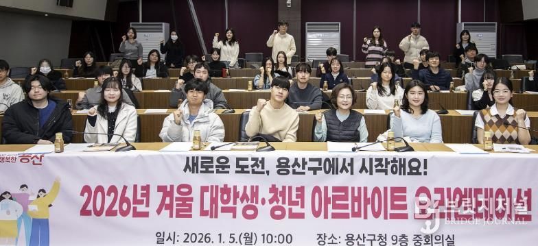 브릿지저널 김경미 기자 | 서울 용산구는 5일 구청 중회의실에서 ‘2026년 동계 대학생‧청년 아르바이트 오리엔테이션’을 열고, 한 달간의 행정 체험을 시작했다고 밝혔다. 이날 행사에는 선발된 대학생·청년 아르바이트생 40여 명이 참석했다.