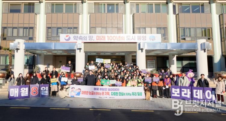 브릿지저널 김경미 기자 | 통영시는 8일 병오년 첫 보라데이를 맞아 통영시 공직자를 대상으로 아동학대 및 4대 폭력 근절을 위한 인식개선 캠페인을 진행했다.