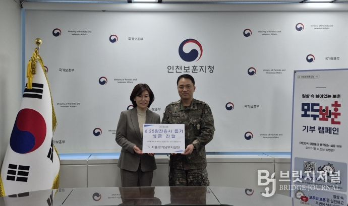 브릿지저널 김경미 기자 | 동절기를 맞아 국가보훈부 인천보훈지청(지청장 장숙남)과 서울경기남부시설단(단장 고병찬)은 1월 29일 1층 겨레홀에서 서울경기남부시설단 직원들의 정성을 모은 성금 전달식을 개최했다.