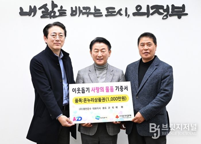 브릿지저널 김경미 기자 | 의정부시는 2월 4일 KD운송그룹이 설 명절을 앞두고 어려운 이웃을 돕기 위해 1천만 원 상당의 온누리상품권을 기탁했다고 밝혔다.