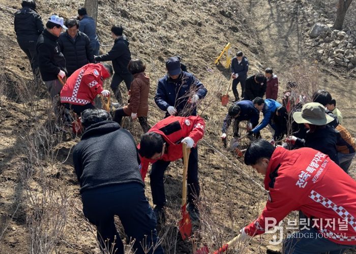 브릿지저널 윤나영 기자 | 전북특별자치도는 제81회 식목일을 맞아 17일 장수군 번암면 봉화산 산철쭉 군락지 일원에서 나무심기 행사를 열고 산철쭉 5,000그루를 식재했다.