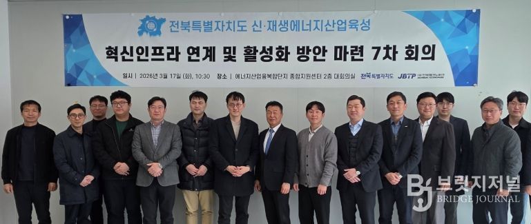 브릿지저널 윤나영 기자 | 전북특별자치도는 17일 새만금 에너지산업융복합단지 종합지원센터 대회의실에서 ‘에너지 분야 혁신인프라 연계 및 활성화 회의’를 개최하고 도내 에너지 분야 혁신기관과 함께 협력사업 확대 및 신규사업 발굴 방안을 논의했다.