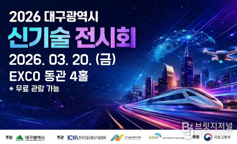 브릿지저널 김진석 기자 | 대구광역시는 건설 및 교통 분야의 우수 신기술을 소개하고, 기술 교류와 산업 활성화를 도모하기 위해 3월 20일 엑스코에서 ‘2026 신기술 전시회’를 개최한다.