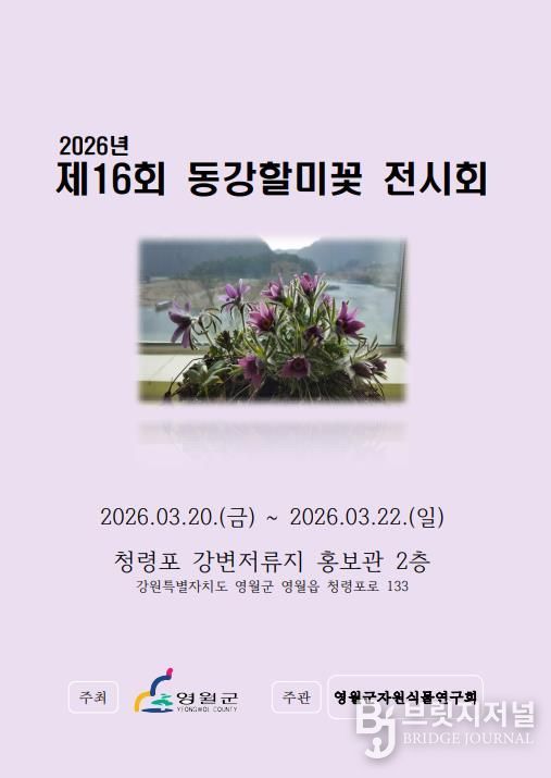 브릿지저널 윤나영 기자 | 2026년 3월 20일부터 22일까지 영월군 청령포 강변저류지 홍보관에서 제16회 동강할미꽃 전시회를 개최한다.
