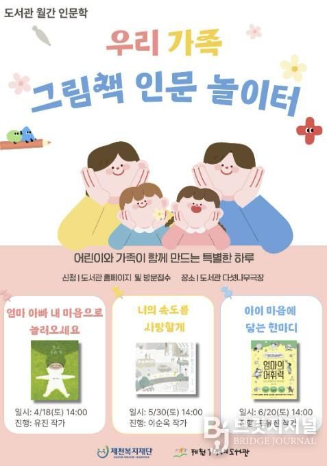 브릿지저널 김경미 기자 | 제천기적의도서관은 오는 4월부터 6월까지 총 3회차로 구성된 가족 인문 프로그램 ‘우리 가족 그림책 인문 놀이터’를 운영한다.