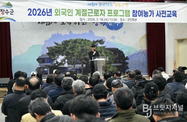 브릿지저널 윤나영 기자 | 장수군은 18일 군청 군민회관에서 2026년도 외국인 계절근로자 고용농가 190명을 대상으로 사전교육을 실시했다.