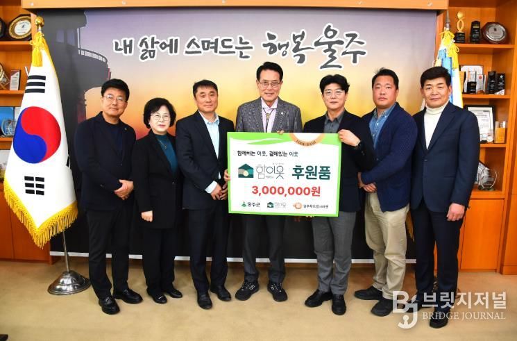브릿지저널 윤나영 기자 | 사단법인 함이웃이 19일 울주푸드뱅크마켓에 300만원 상당의 후원품을 전달했다.