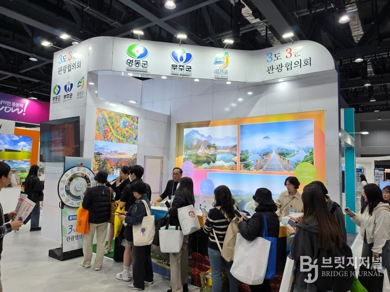 브릿지저널 김경미 기자 | 충북 영동군, 충남 금산군, 전북 무주군으로 구성된 3도3군 관광협의회가 19일부터 22일까지 나흘간 서울 코엑스 마곡에서 열리는 ‘2026 내나라 여행 박람회’에 참가해 공동홍보부스를 운영하며 열띤 관광 홍보에 나섰다.