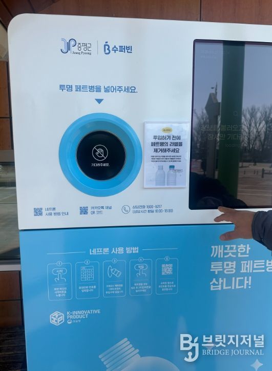브릿지저널 김경미 기자 | 충북 증평군이 ‘투명페트병 무인회수기’ 1대를 추가 설치하고 본격 운영에 들어갔다고 20일 밝혔다.
