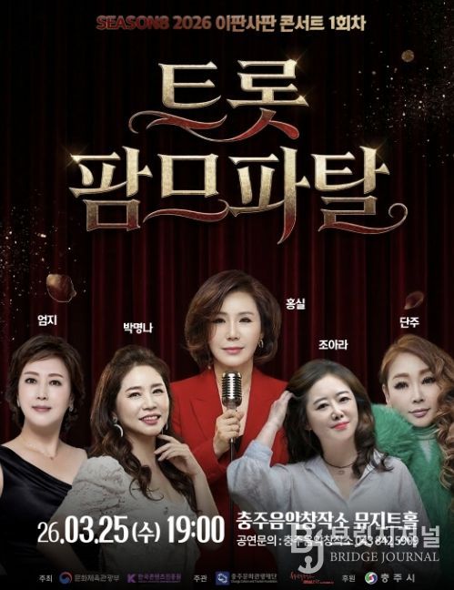 브릿지저널 김경미 기자 | 충주음악창작소는 오는 3월 25일 오후 7시 창작소 뮤지트홀에서 2026 음악창작소 프로그램 운영지원 사업 ‘이판사판 콘서트 시즌8’ 1회차 공연 ‘트롯 팜므파탈’을 선보인다.