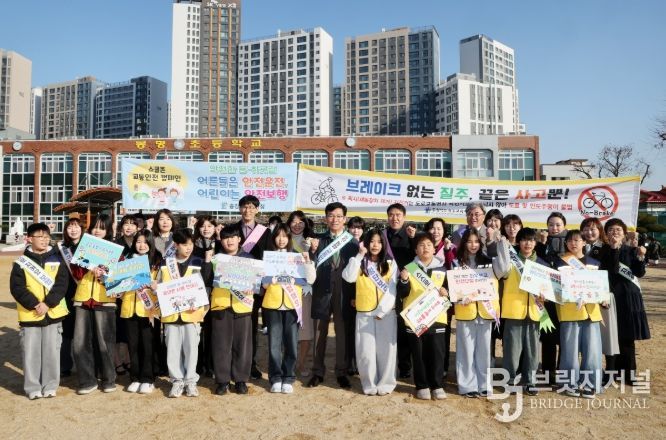 이번 캠페인은 등하굣길 어린이 교통사고 예방과 보행 안전 의식 확산을 위해 마련됐으며, 충북교육청과 청주교육지원청, 봉명초등학교가 함께 참여해 학생자치회 주도로 진행됐다.