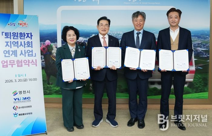 브릿지저널 정보영 기자 | 영천시는 지난 20일 시청 시장실에서 영남대학교 영천병원, 효사랑요양병원, 해오름요양병원 등 의료기관 3개소와 ‘퇴원환자 지역사회 연계사업’ 추진을 위한 업무협약(MOU)을 체결했다.