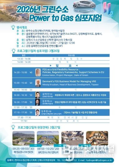 브릿지저널 윤나영 기자 | 동해시가 3월 26일부터 27일까지 이틀간 현진관광호텔 및 수소산업 현장 일원에서 '제5회 그린수소 P2G(Power to Gas) 심포지엄'을 개최한다.