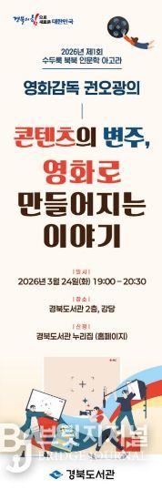 브릿지저널 정보영 기자 | 경북도서관은 3월 24일 저녁 7시, 도서관 2층 강당에서 영화감독 권오광을 초청해 ‘2026년 수두룩 북북 인문학 아고라’ 첫 번째 강연을 개최한다.